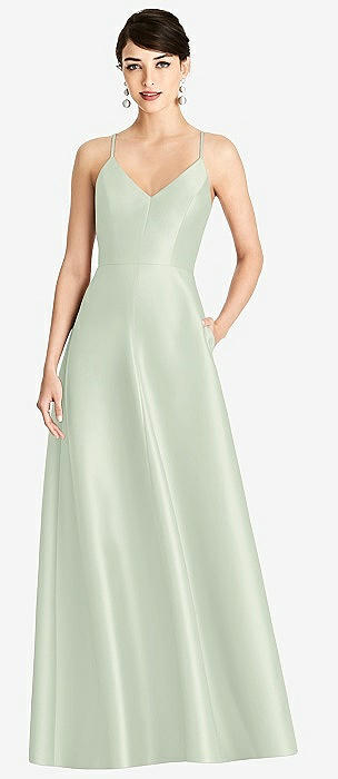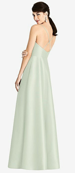 V-Neck Full Skirt Satin Maxi Dress in mint green