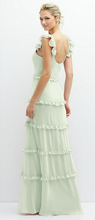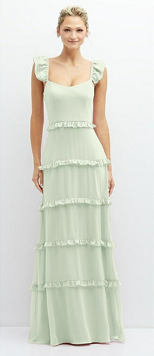 Tiered Chiffon Maxi A-line Dress with Convertible Ruffle Straps in mint green