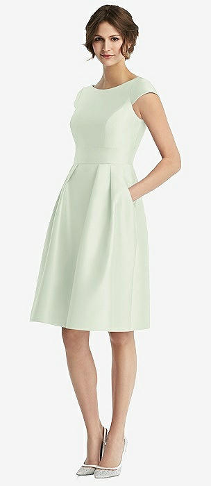 Cap Sleeve Pleated Cocktail Dress with Pockets in mint green