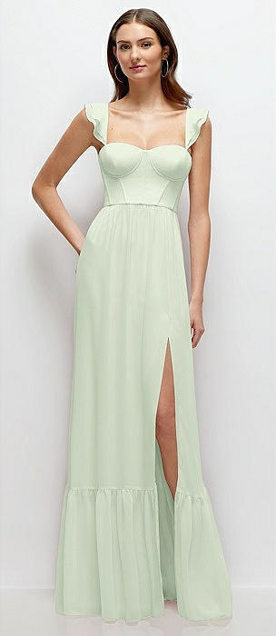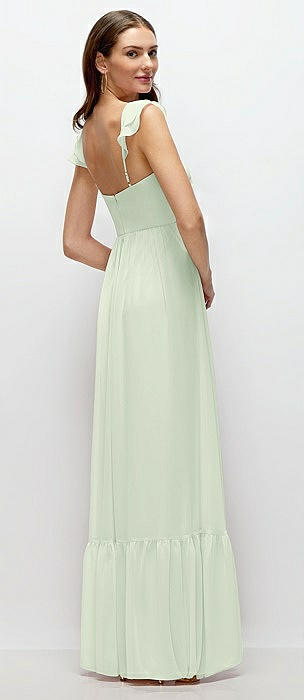 Ruffle Strap Chiffon Bustier Maxi Dress with Ruffle Hem A-Line Skirt in mint green