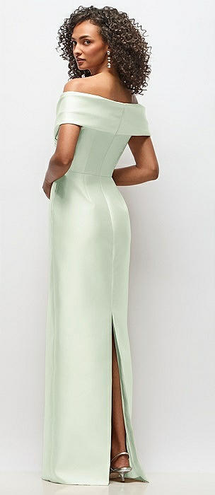 Off-the-Shoulder Draped Wrap Satin Maxi Dress in mint green