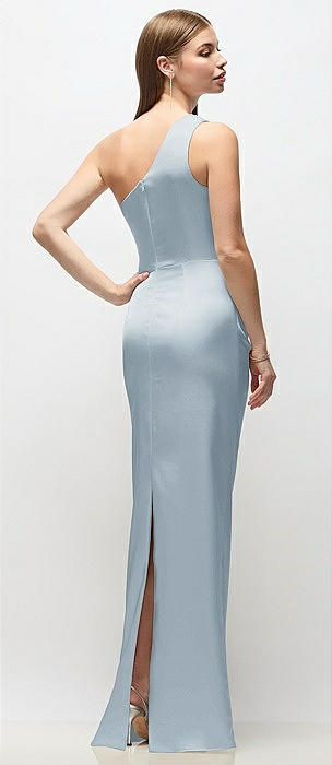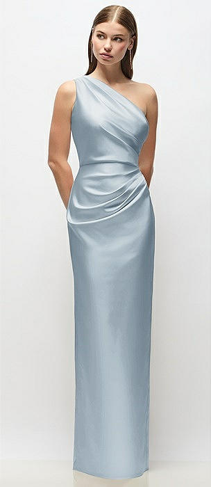 One-Shoulder Draped Bodice Stretch Satin Column Maxi Dress in mist