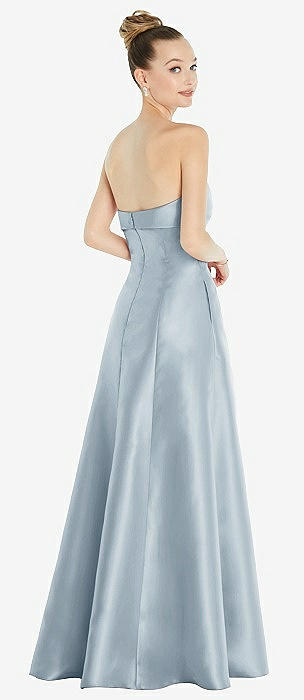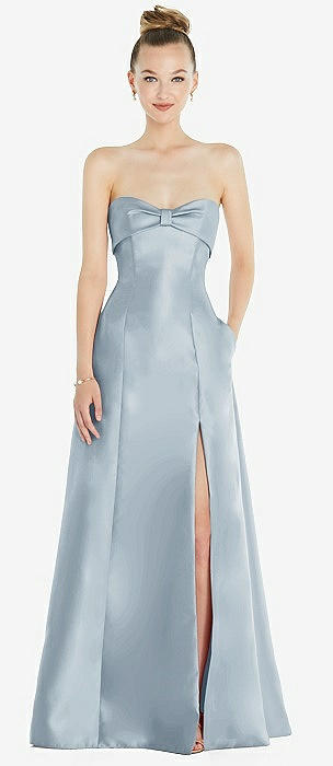 Bow Cuff Strapless Satin Ball Gown with Pockets in mist