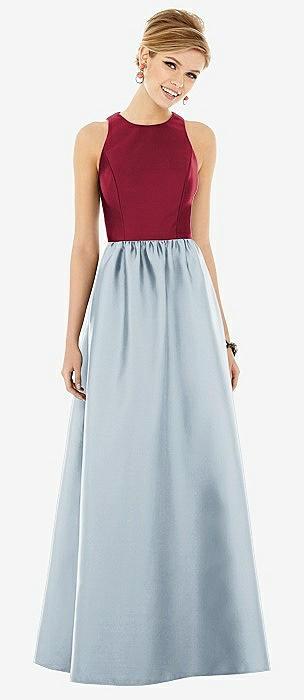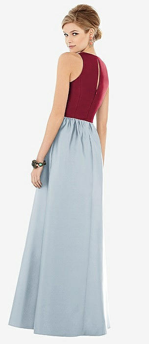Sleeveless Keyhole Back Satin Maxi Dress in mist