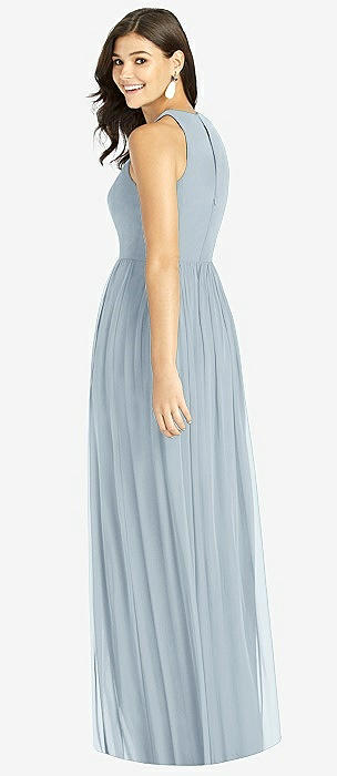 Shirred Skirt Jewel Neck Halter Dress with Front Slit in mist
