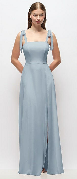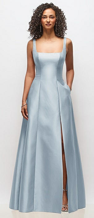 Square-Neck Satin A-line Maxi Dress with Front Slit in mist