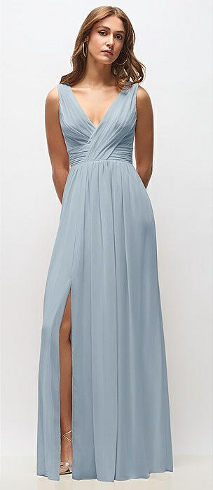 Deep V-Neck Chiffon Maxi Dress in mist