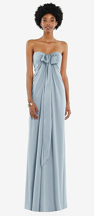 Strapless Draped Bodice Column Dress with Oversized Bow in mist