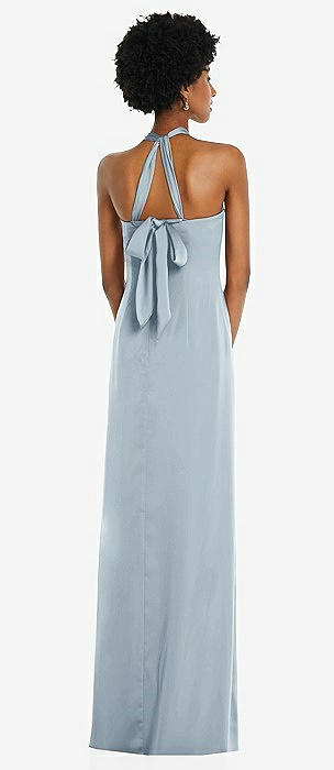 Draped Satin Grecian Column Gown with Convertible Straps in mist