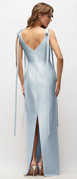 Bateau Neck Satin Column Maxi Dress with Exaggerated Tail Bow Straps in mist