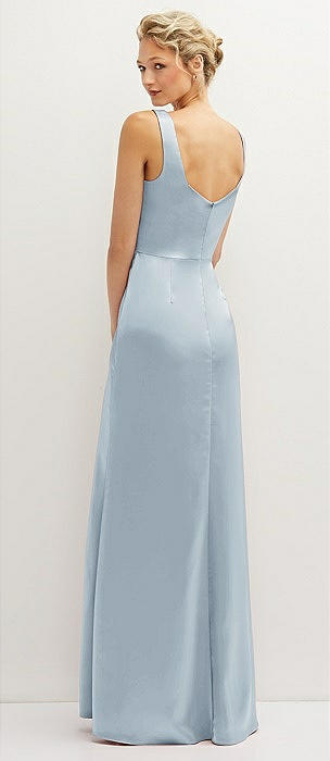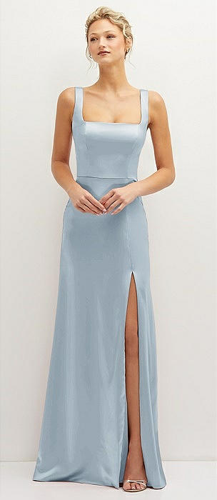 Square-Neck Satin A-line Maxi Dress with Front Slit in mist