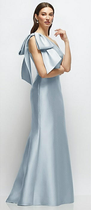Bow One-Shoulder Satin Maxi Dress with Trumpet Skirt in mist