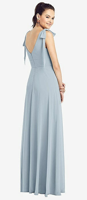 Bow-Shoulder V-Back Chiffon Gown with Front Slit in mist