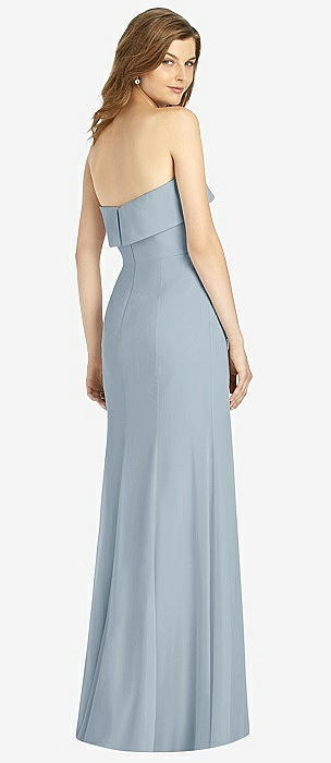 Strapless Pleated Faux Wrap Trumpet Gown with Front Slit in mist