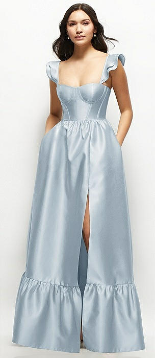 Satin Corset Maxi Dress with Ruffle Straps & Skirt in mist