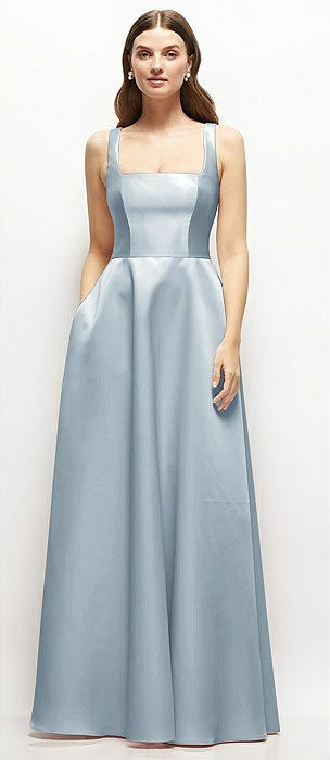 Square-Neck Satin Maxi Dress with Full Skirt in mist