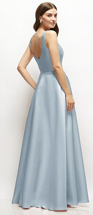 Lace-Up Back Bustier Satin Dress with Full Skirt and Pockets in mist
