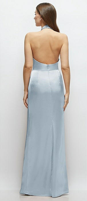 V-Neck Halter Satin Trumpet Gown in mist
