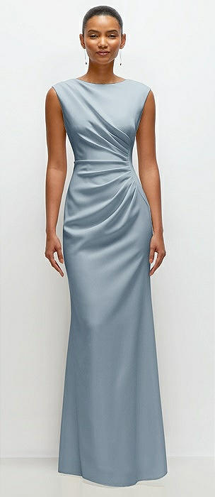 Draped Wrap Stretch Satin Mermaid Dress with Horsehair Hem in mist