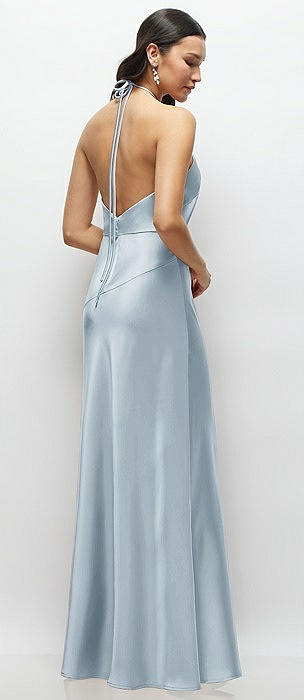 Plunge Halter Open-Back Maxi Bias Dress with Low Tie Back in mist