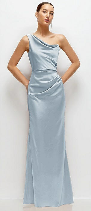 One-Shoulder Draped Twist Empire Waist Trumpet Gown in mist