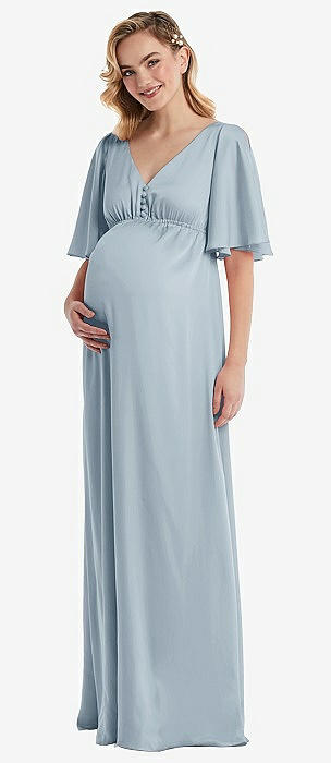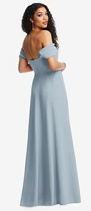Bow-Shoulder V-Back Chiffon Gown with Front Slit in mist