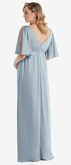 Cap Sleeve Open-Back Trumpet Gown with Front Slit in mist