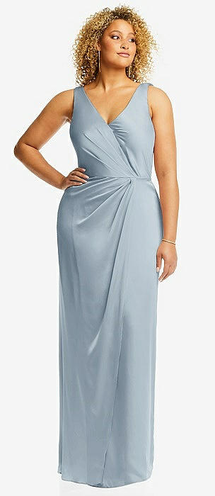 Faux Wrap Whisper Satin Maxi Dress with Draped Tulip Skirt in mist