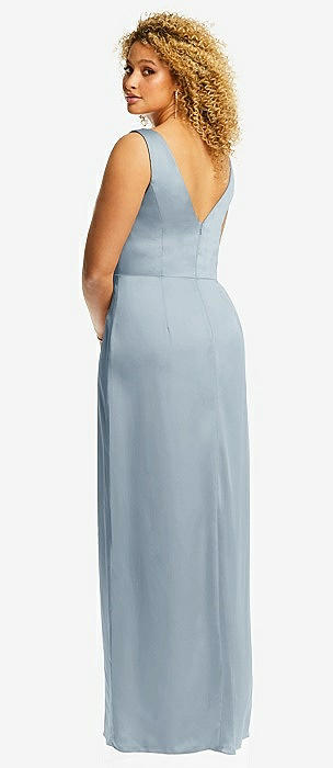 Sleeveless Satin Trumpet Gown with Bow at Open-Back in mist