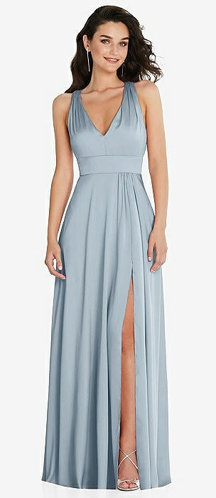 V-Neck Full Skirt Satin Maxi Dress in mist