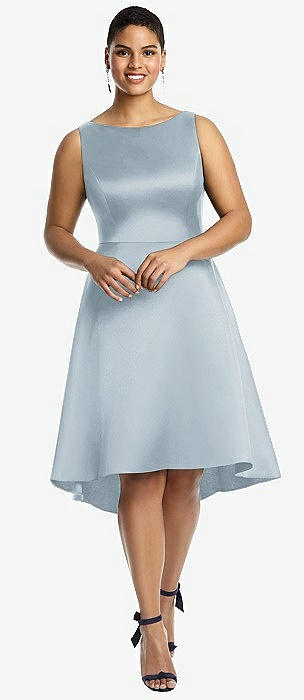 Bateau Neck Satin High Low Cocktail Dress in mist