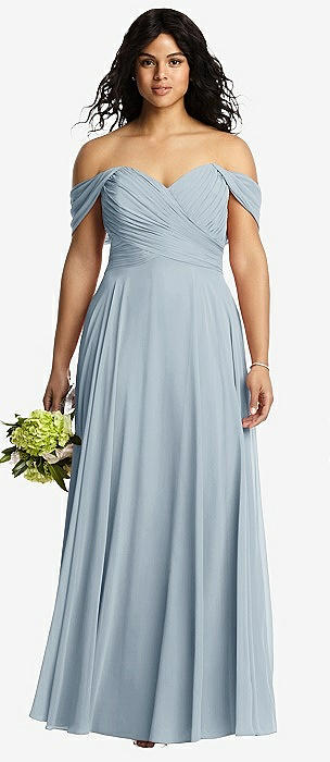 Off-the-Shoulder Draped Chiffon Maxi Dress in mist