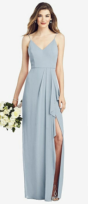 Spaghetti Strap Draped Skirt Gown with Front Slit in mist