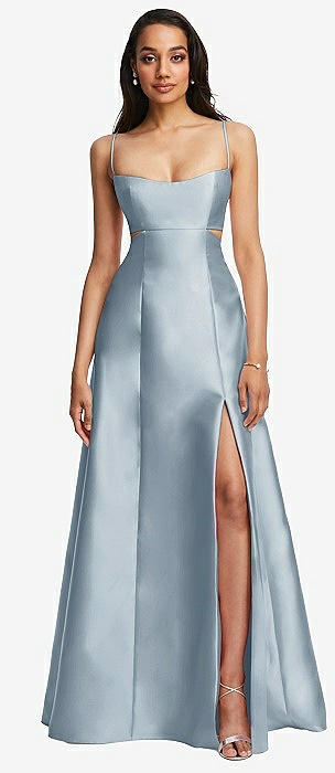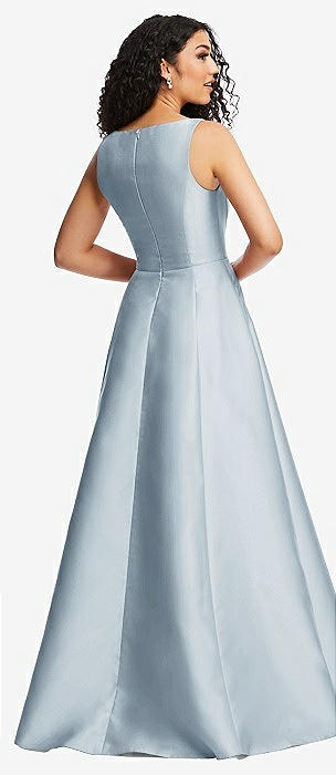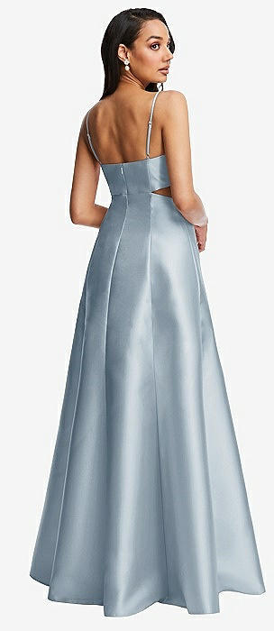 Open Neckline Cutout Satin Twill A-Line Gown with Pockets in mist