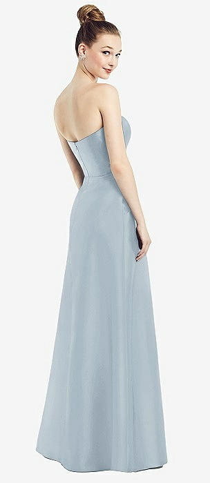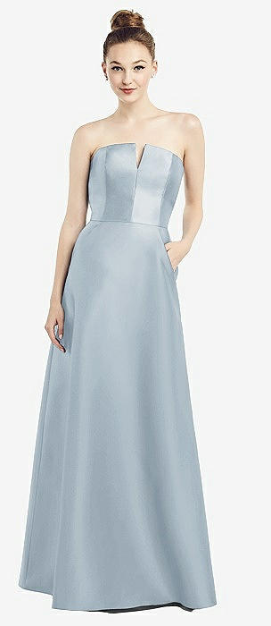 Strapless Notch Satin Gown with Pockets in mist