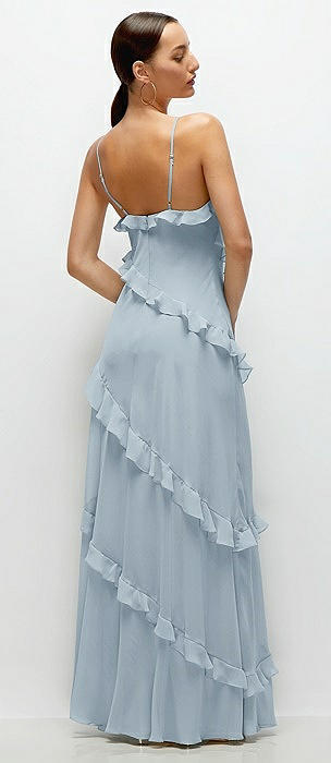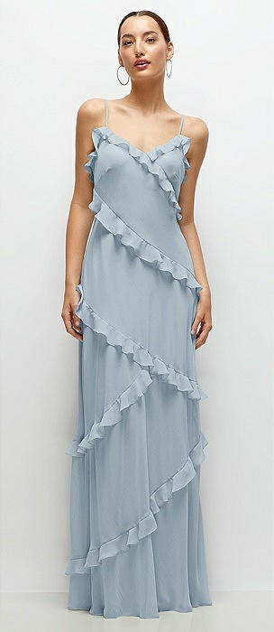 Asymmetrical Ruffle Chiffon Bias Slip Maxi Dress in mist