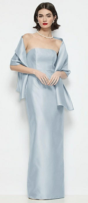 A-Line Satin Maxi Dress with Convertible Off-the-Shoulder or Strapless Looks in mist