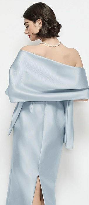Off-the-Shoulder Bow-Back Satin Trumpet Gown in mist