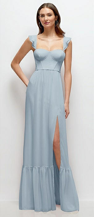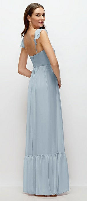 Ruffle Strap Chiffon Bustier Maxi Dress with Ruffle Hem A-Line Skirt in mist