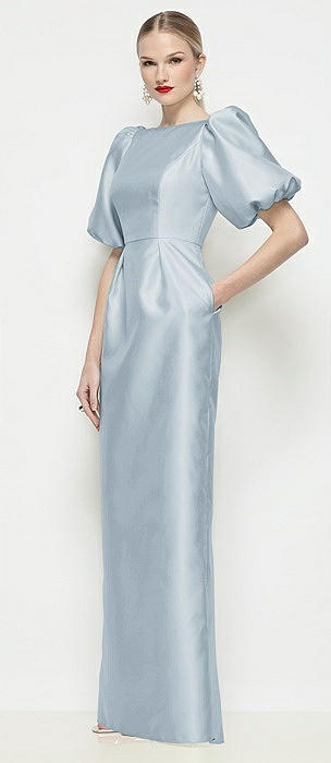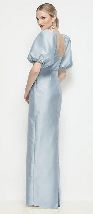 Bateau Neck Satin Column Maxi Dress with Puff Sleeves in mist