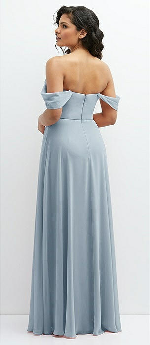 Chiffon Corset Maxi Dress with Removable Off-the-Shoulder Swags in mist
