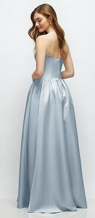 Scoop Neck Drop Basque Skirt Satin Maxi Dress with Pockets in mist