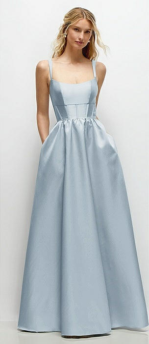 Scoop Neck Inset Corset Satin Maxi Dress with Pockets in mist
