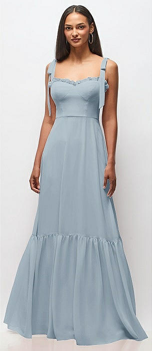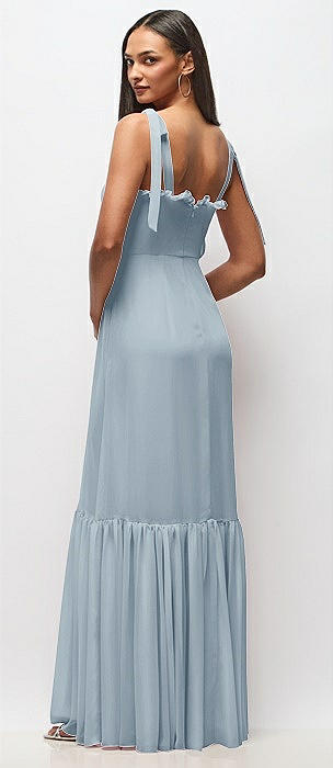 Tie-Shoulder Bustier Bodice Ruffle-Hem Maxi Dress in mist
