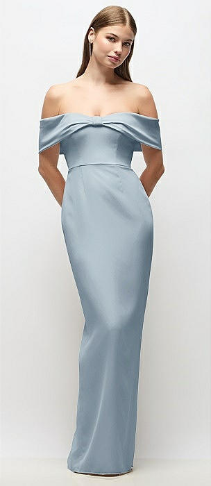 Off-the-Shoulder Crepe Column Maxi Dress with Bow-Pinch Detail in mist