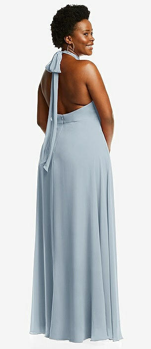 Pleated Halter Bias Satin Maxi Dress with Self-Tie Bow Back in mist