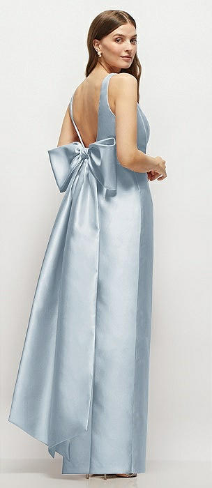 Sleeveless Satin Trumpet Gown with Bow at Open-Back in mist