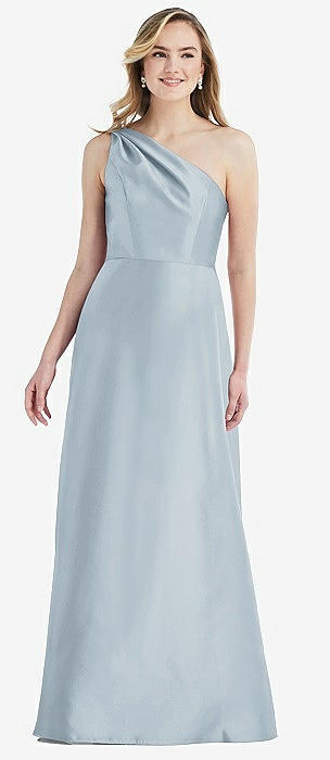 Bow One-Shoulder Full A-Line Satin Maxi Dress in mist