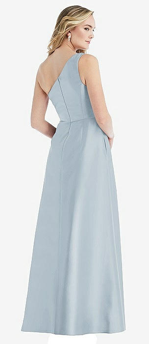 Draped One-Shoulder Satin Maxi Dress with Pockets in mist