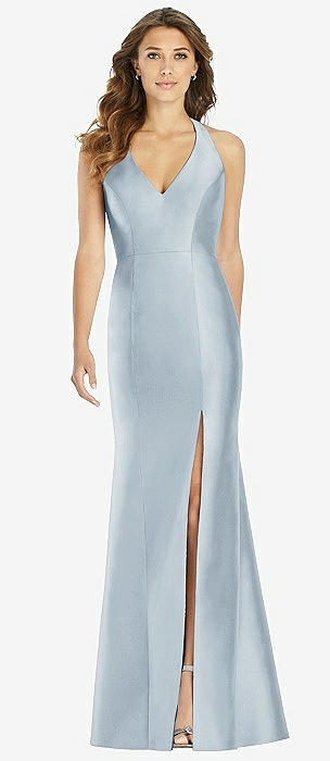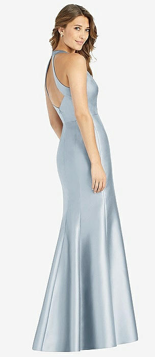 Sleeveless Satin Trumpet Gown with Bow at Open-Back in mist